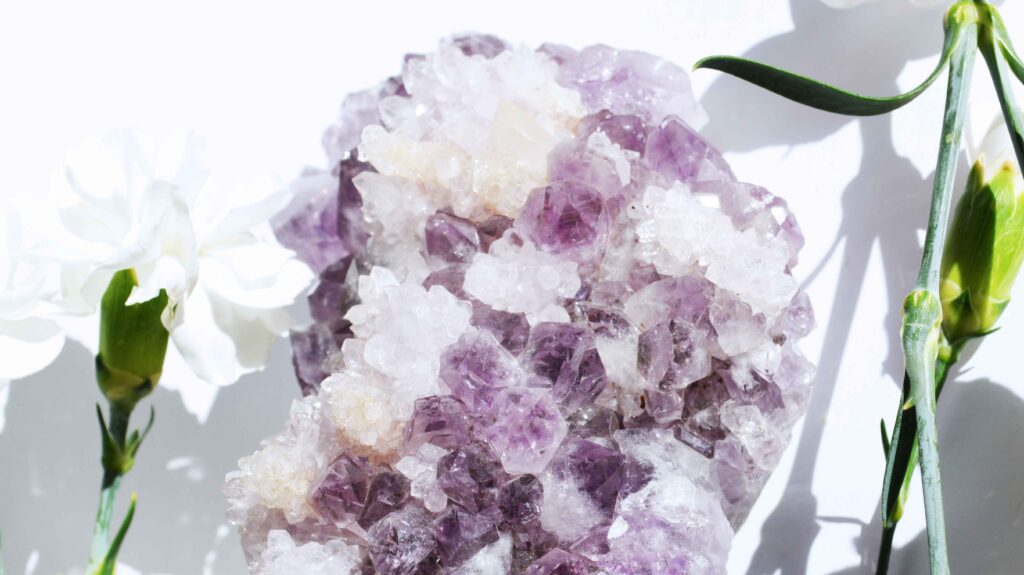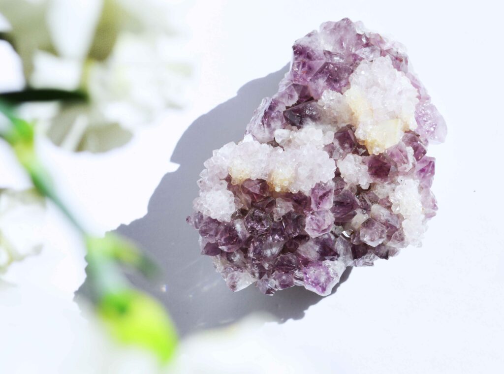 アメシストクラスターは、紫色の水晶が群晶状に成長した、天然石の代表格と言える子です。