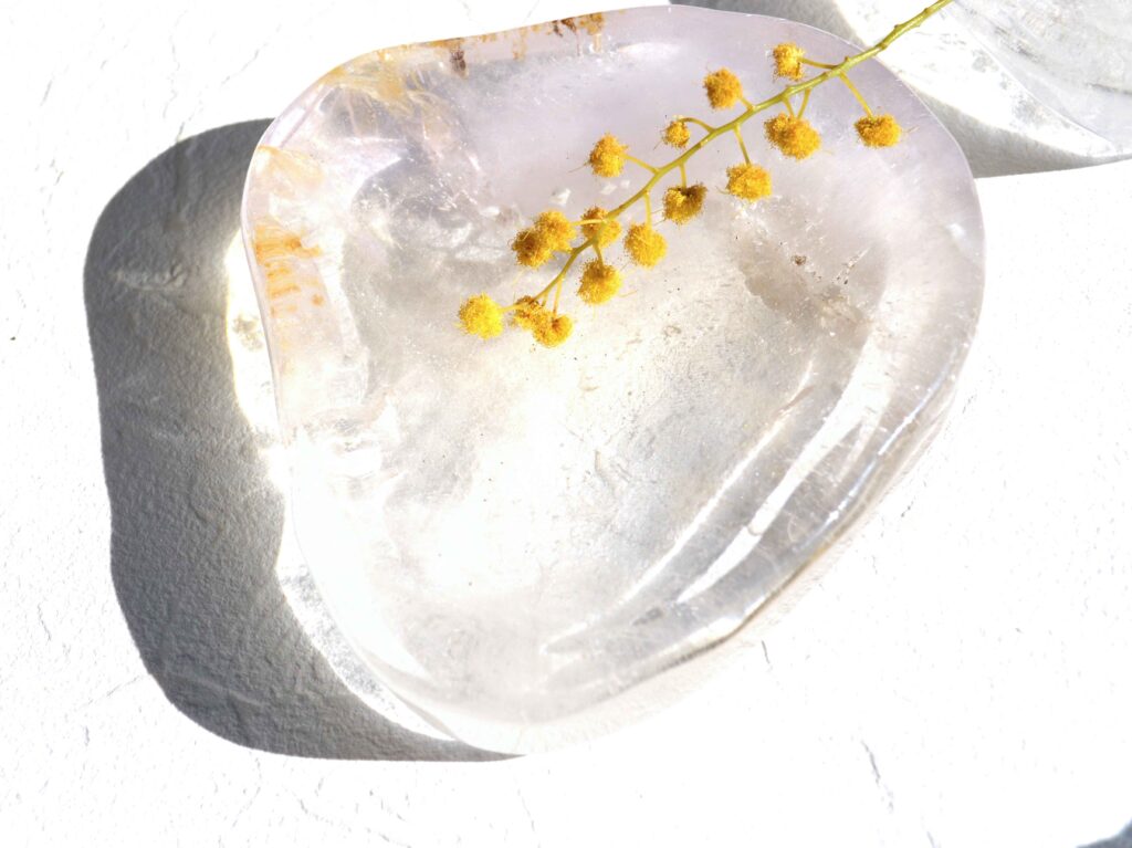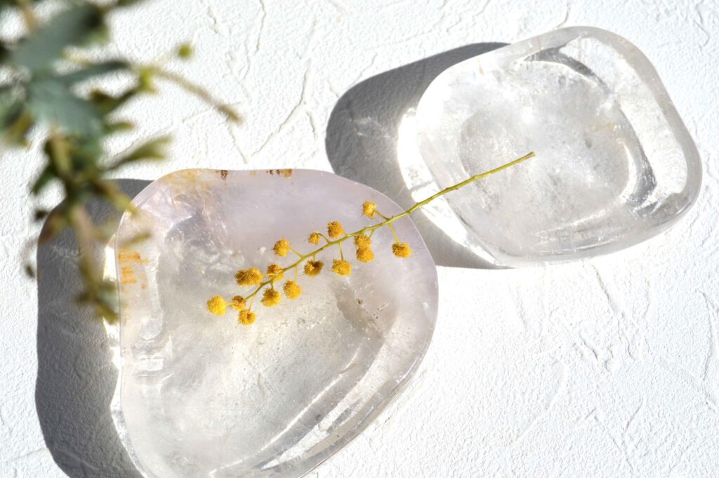 クオーツディッシュは、透明度の高い天然水晶を用いたシンプルで美しい造形が魅力のアイテム。