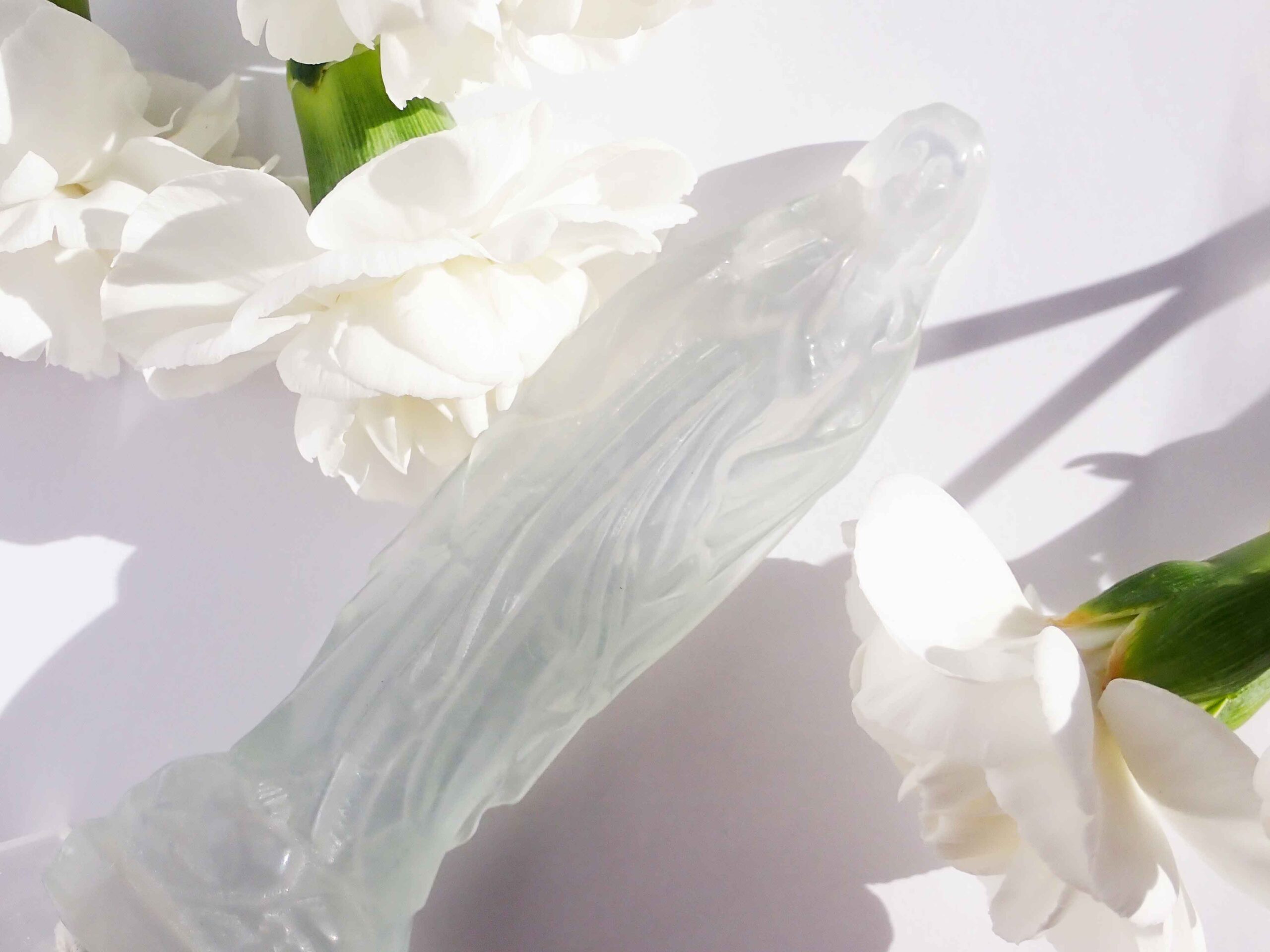 フローライトはカルシウムフッ化物(CaF₂)からなる鉱物で、紫・緑・青など多彩な色彩がありますがこちらのマリア様は淡いレインボーカラーです。